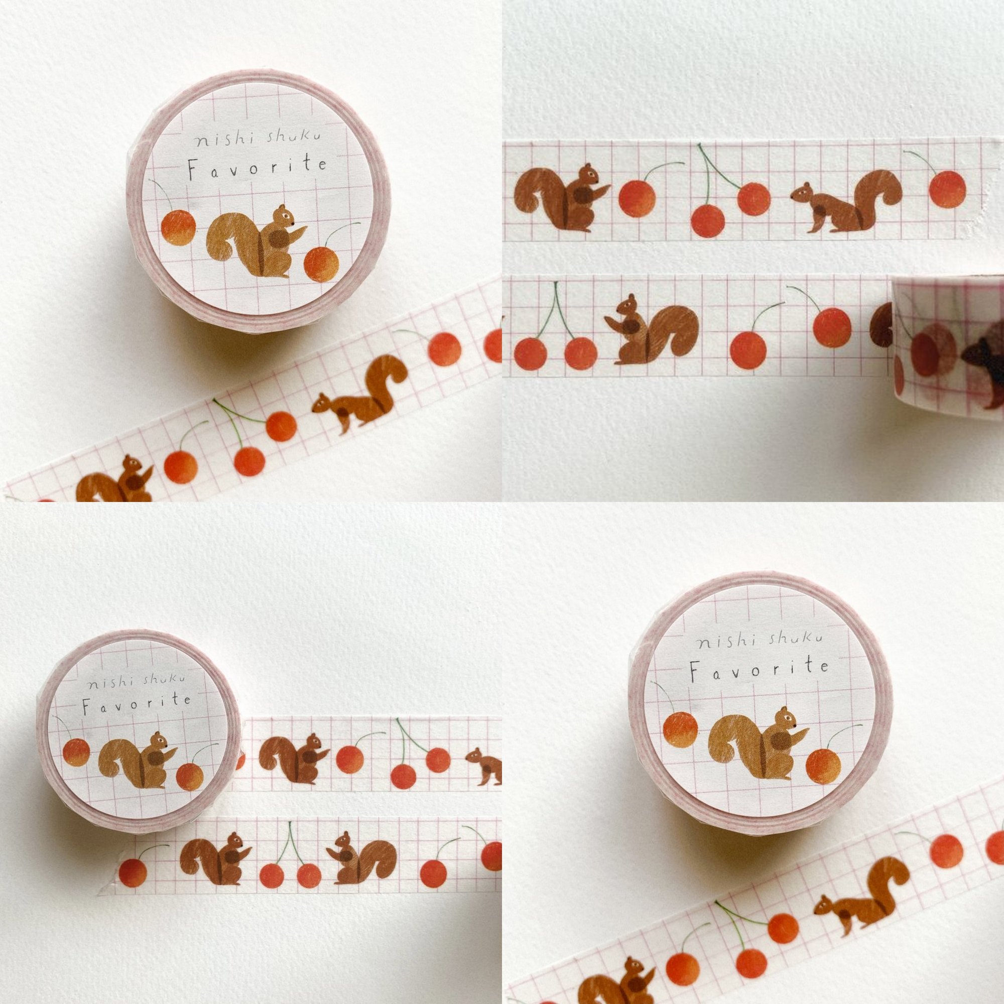 Squirrels - A lot of cherries and squirrels. You can cut it into small pieces and use it like a sticker. It's a cute design that makes you want to stick it on your favourite things.