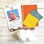 Everything you need to complete the project is in the box. This kit includes high quality super soft wool mix felt as well as 12 carefully chosen assorted DMC threads, a needle, toy filling and ribbon.