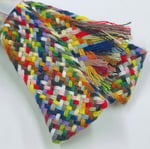 This thread is easy to use for sewing buttons and other small sewing projects and is knitted into ribbons. Just pull out the strands you need and use them one by one.