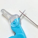 Easy-to-hold; needle threader has indented profile for finger placement and gripping. Beak swings upward to expose wire, and then swings downward to protect for storage. Small lanyard hole in top of wing can be used for inserting cord or string. Suitable for most hand sewing needles with the exception of beading needles