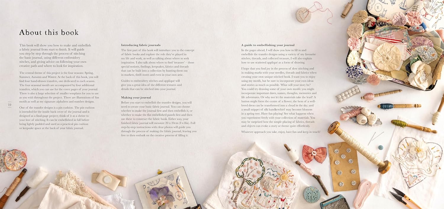 There are step-by-step instructions for how to make the fabric journal measuring 20cm x 20cm (7.8in x 7.8in). Jessie explains how to create your own seasonal story throughout the book so you can chart your year and mark any memorable occasions or events that you want to include, making it a wonderful memory book for a loved one or a family heirloom to be passed from generation to generation.
