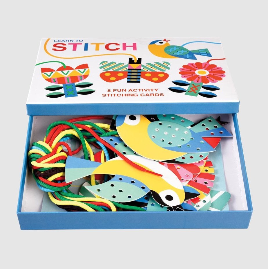 This fun, rainy day activity contains eight easy to stitch cards and eight lengths of colourful string, so kids can make their own pretty decorations. Great for fine tuning motor skills!