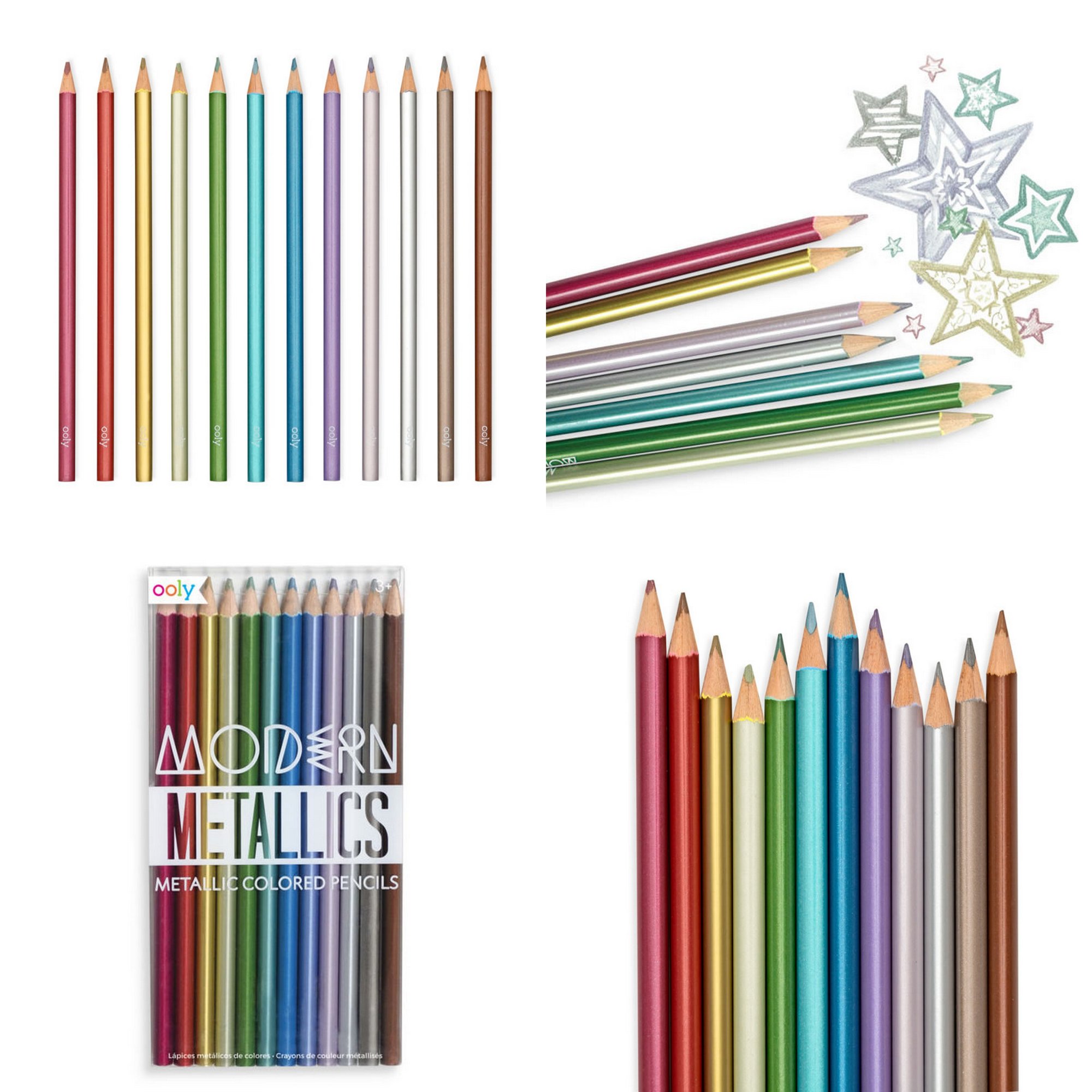 Bring a modern look to your colouring projects with the Modern Metallics Coloured Pencils. This fun pencil set features 12 unique colors that'll leave a glistening sheen that can make your coloring truly distinct. Try mixing metallic colors together for even more interesting hues. You can also make elements in your colouring books stand out by mixing metallic colours with classic ones. Modern Metallics have triangular shaped barrels that make a great ergonomic fit for easy coloring; and roll-away pencils will be a thing of the past.