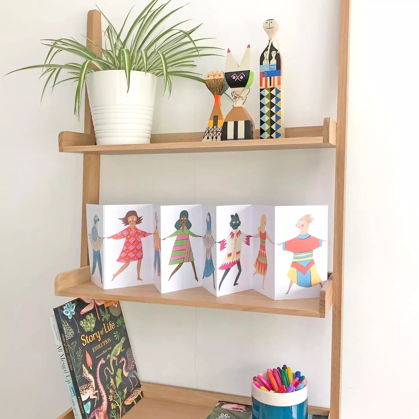 This fun 'New Friends' concertina print by Sukie adds a splash of colour, fun and some friendly faces to your shelf, mantlepiece or wall.