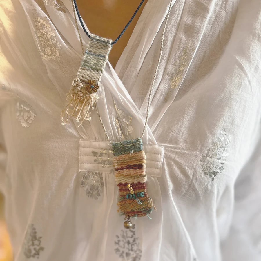 You can enjoy making original accessories and decorations with the finished small weavings.