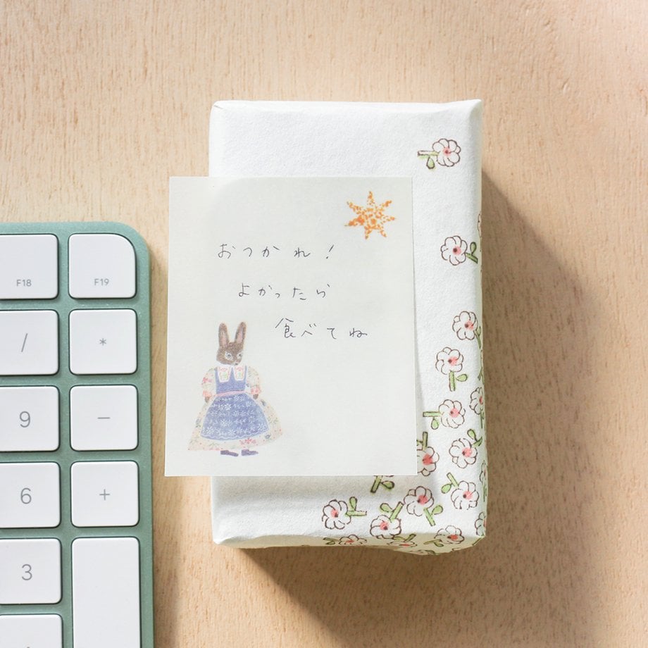 We love all illustrations by Japanese artist, Aiko Fukawa and these cute tracing paper sticky notes with a rabbit drawn on it are just adorable.