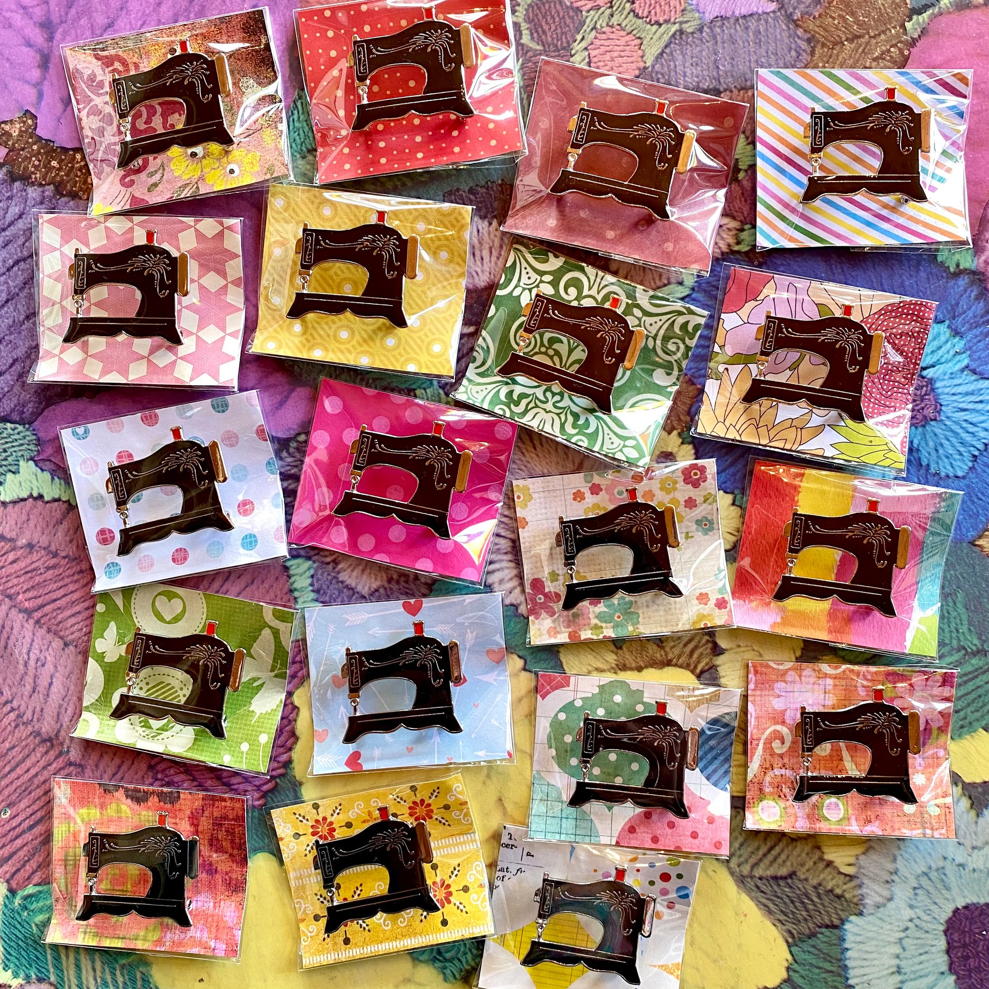 A popular gift for a crafty friend or yourself this lovely enameled vintage style sewing machine brooch makes for a cute conversation starter.