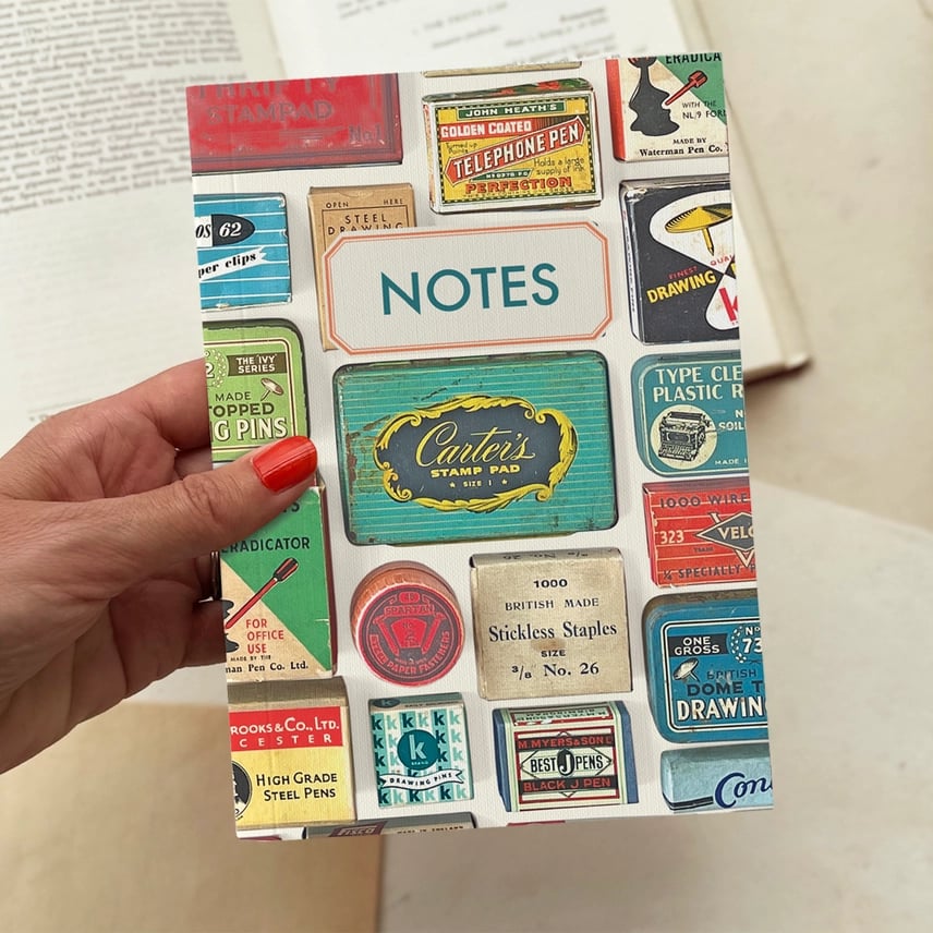 A notebook with a printed image of vintage stationery, taken from the Sukie collection of vintage ephemera. Perfect for writing and recording notes and ideas.