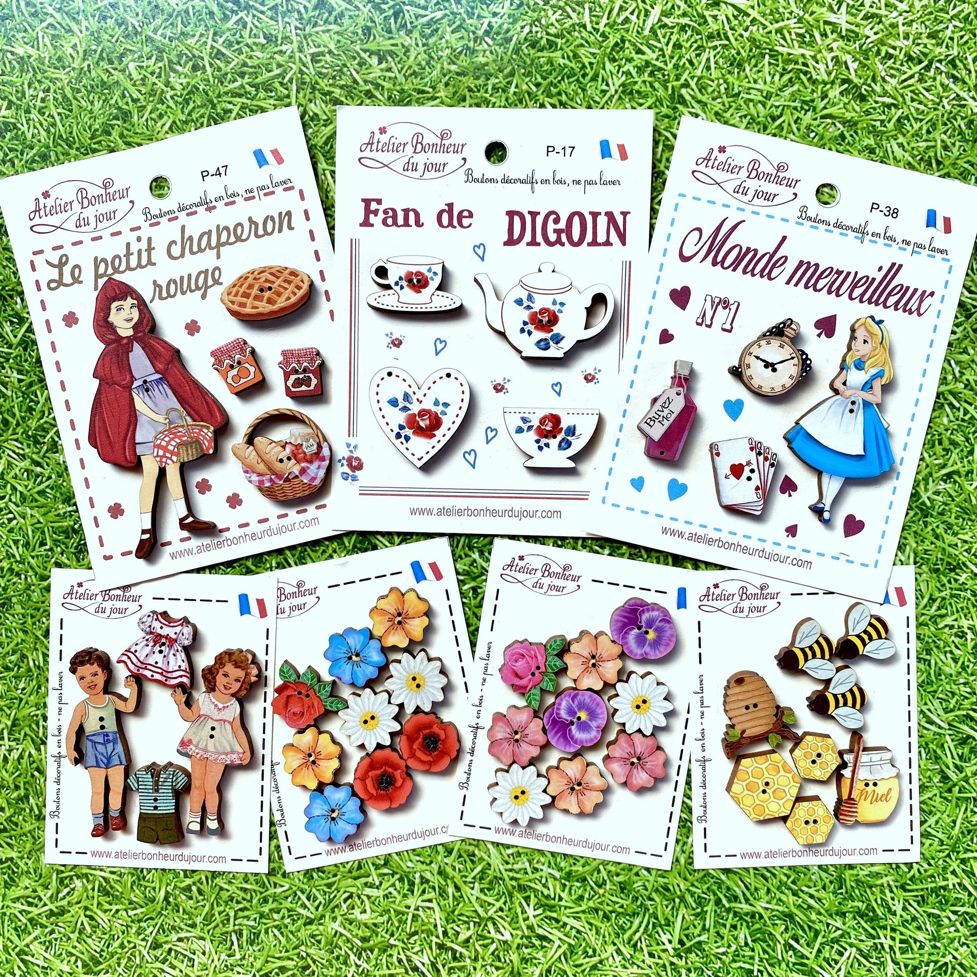 These beautiful buttons are one of our all time favourite crafty things! Made at Atelier Bonheur du jour in France you can use them to embellish and add a unique touch to any number of projects.