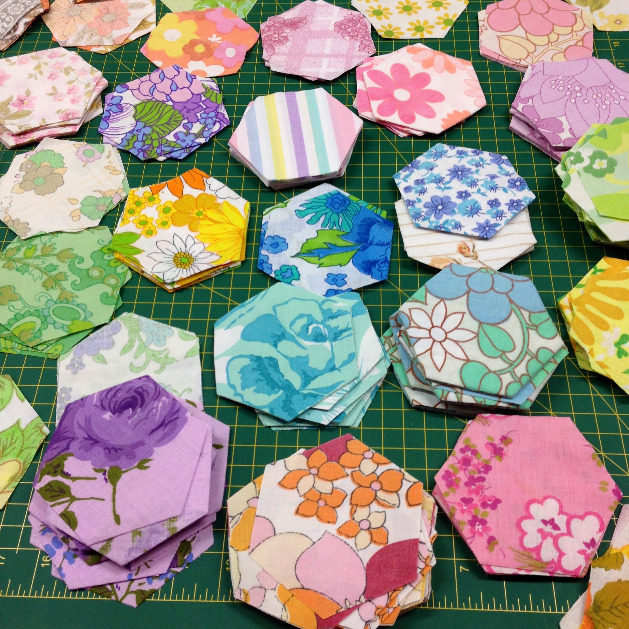 Vintage sheet hexies - perfect for making all sorts of craft projects, cushions and quilts. Each pack contains an assortment of colours and patterns - all different. Packs of 2" and 1" available plus papers.